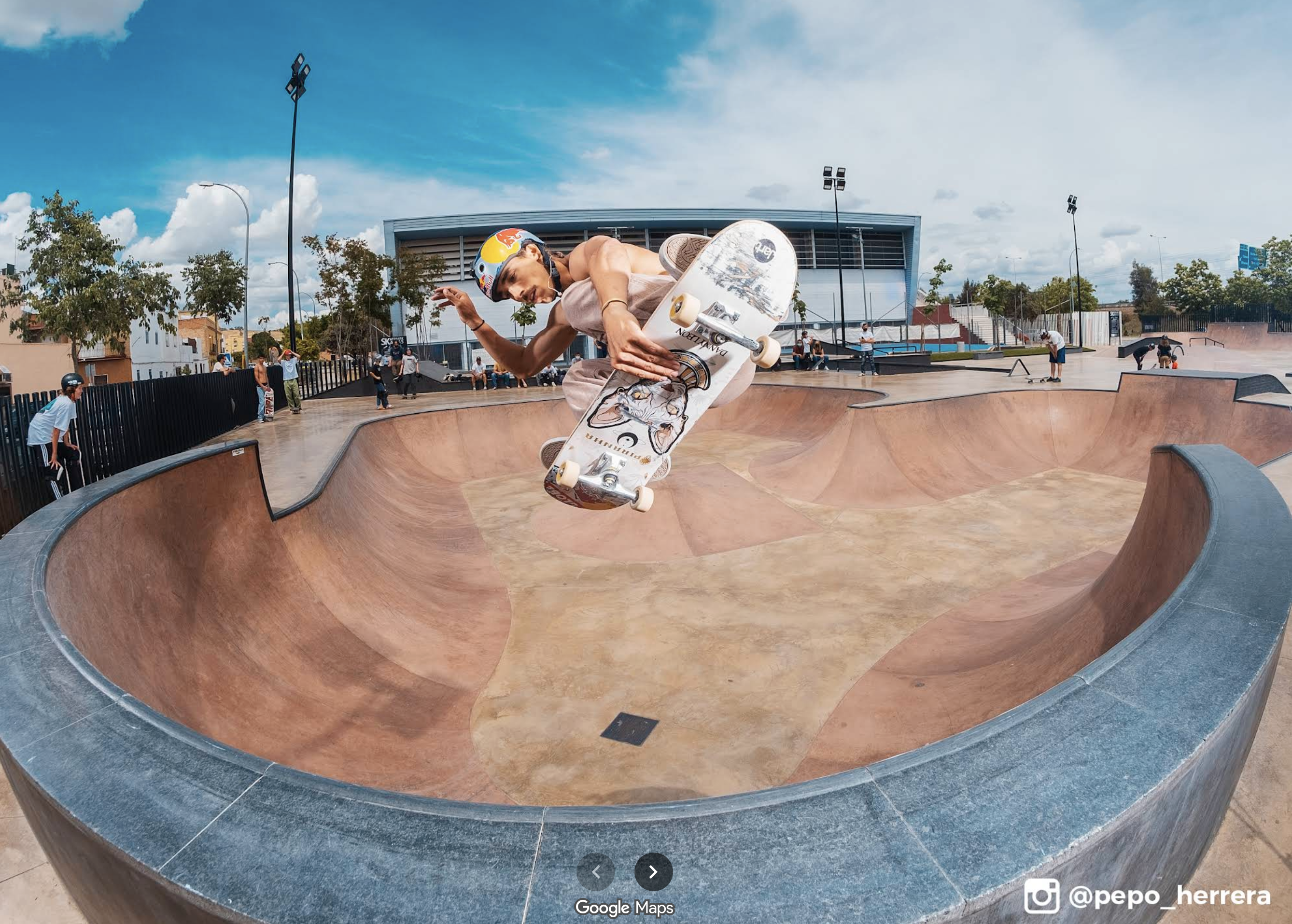 El más grande del Aljarafe, con más de 4.800 m². Inaugurado en 2023 y con nombre en homenaje a Ignacio Echeverría, incluye un bowl central de dos niveles y una zona street completísima con rails, gaps, escalones y quarters. Perfecto para todos los niveles.